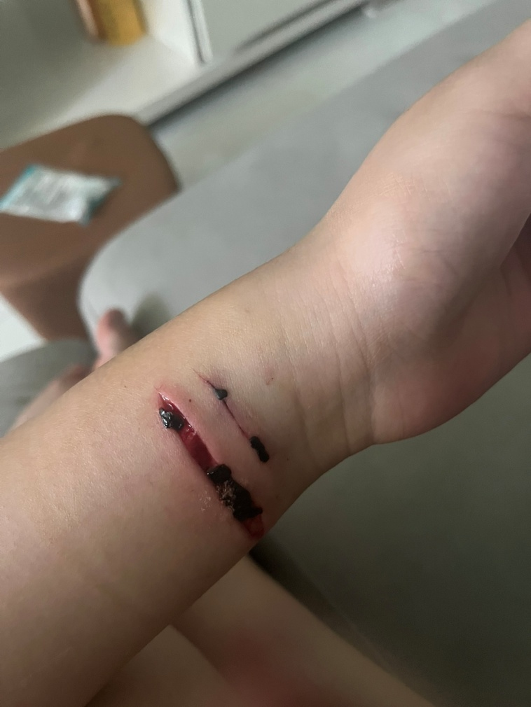 (其余照片涉及到鲜血和伤口为防止违规就不发出来了。)我一看这姑娘是割腕在流血,赶紧向她问清楚了原委,原来她男朋友不接她电话,拉黑了她电话和微信,她觉得生无可恋,无法面对亲友们和未来的生活,走上自残绝路,我好说歹说把她男朋友电话问出来,然后我立即打了电话报警去现场救人,并同时打了电话给她男朋友,在我说清形势后她男朋友终于醒悟,立刻赶去了她的住所,避免了一宗惨剧的发生!